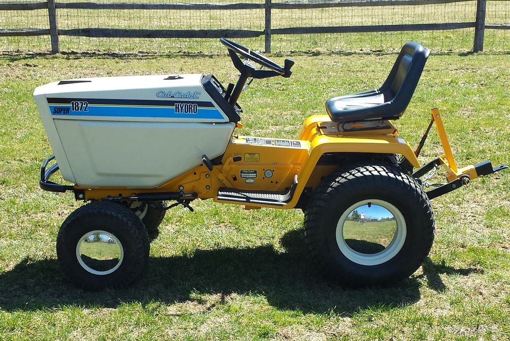 I would like to get some honest opinions from you guys. I am thinking about selling my supers. Since I bought the new mustang and gave the old one to my son we have been spending most of our hobby time on the cars. He really is not too interested in the Cubs. So now they are just sitting covered up. I do not use any for work anymore. They do not cost me anything but space. So should I sell them or will they appreciate with time. I am not trying to brag or be an ass but they are some of the nicest Supers I have seen. Some of you have seen them at shows, plow day or my house. Please tell me if you disagree. If I do sell them what do I ask? It seems the consensus on the forum is that average supers are worth up to about $1500 when buying. I have sold 2182's for over $2700 as well as an 1882 for the same and a bunch of 1872's and 2072's for $2000-$2200 some with and some without decks. These were all very nice above average tractors and with the exception of the 1882 my current supers are much nicer. They all have 700-975 hours. They are not restored they are for the most part original most of the paint is original except for some minor touch ups. All have new seats. NOS steering wheel caps and emblems ( impossible to find) and tool box. Tires are very good and matching. All have hub caps and bumpers. These bumpers are now selling on ebay for over $125. 1872 has 3pnt. 1772 has ags, filled tires, and 3pnt. 2072 only one w/o 3pnt. the 1572 has 3pnt and rear pto and also had all the improvements, CV joint drive shaft, reduction starter, glow plug upgrade. I have various decks that could be added. So if I started at $2000 for a nice gas and $2300 for a nice diesel and added for all the extras I would be over $3000. I don't think anyone would pay that much. I can see that if I parted them out I could make a small fortune. It would just be a shame to part out such nice tractors. I also have a second 1872 that I would keep as a back up mower or i could sell it too. not sure. It took me about 8 years and over 25 supers to get to this point. My goal in the beginning was to collect all 4 72 supers that were in really nice condition. Now that I have them. It might be time to move on to a new challenge. Let me know what you think.