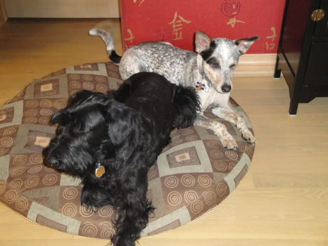We have 5 furry Family members in our household, 2 -doggies & 3 indoor kitties. In our 41 years of marriage (may I add heavenly bliss ) we have always had furry creatures as Family members. We now have 2 doggies & both are rescued/abused/ neglected/ unwanted- pets. The MOST rewarding dogs we ever had. Long stories about both of them, I dont think I have the ambition this morning to explain. ![]() Our Giant (stunted because of neglect) Schnauzer -SHARKA-the day we got her at #35lbs, & 11 months old, she should have been 65/70 lbs. ![]() A year later having filled out at #65lbs.; ![]() How can one not see the LOVE in a face like this? ![]() Then we adopted a Austrailian 'Blue Healer' Cattle Dog-Bentley-, another pathetic abuse case from Southern Michigan, now turns out that this creature is the SMARTEST dog we EVER had. This dog looks at me & knows what i'm thinking, Bentley has no limits, will work (play) till he drops. ![]() Now these 2 have never ever had any sign of aggresion toward each other, even with food, they are the best of bud's.