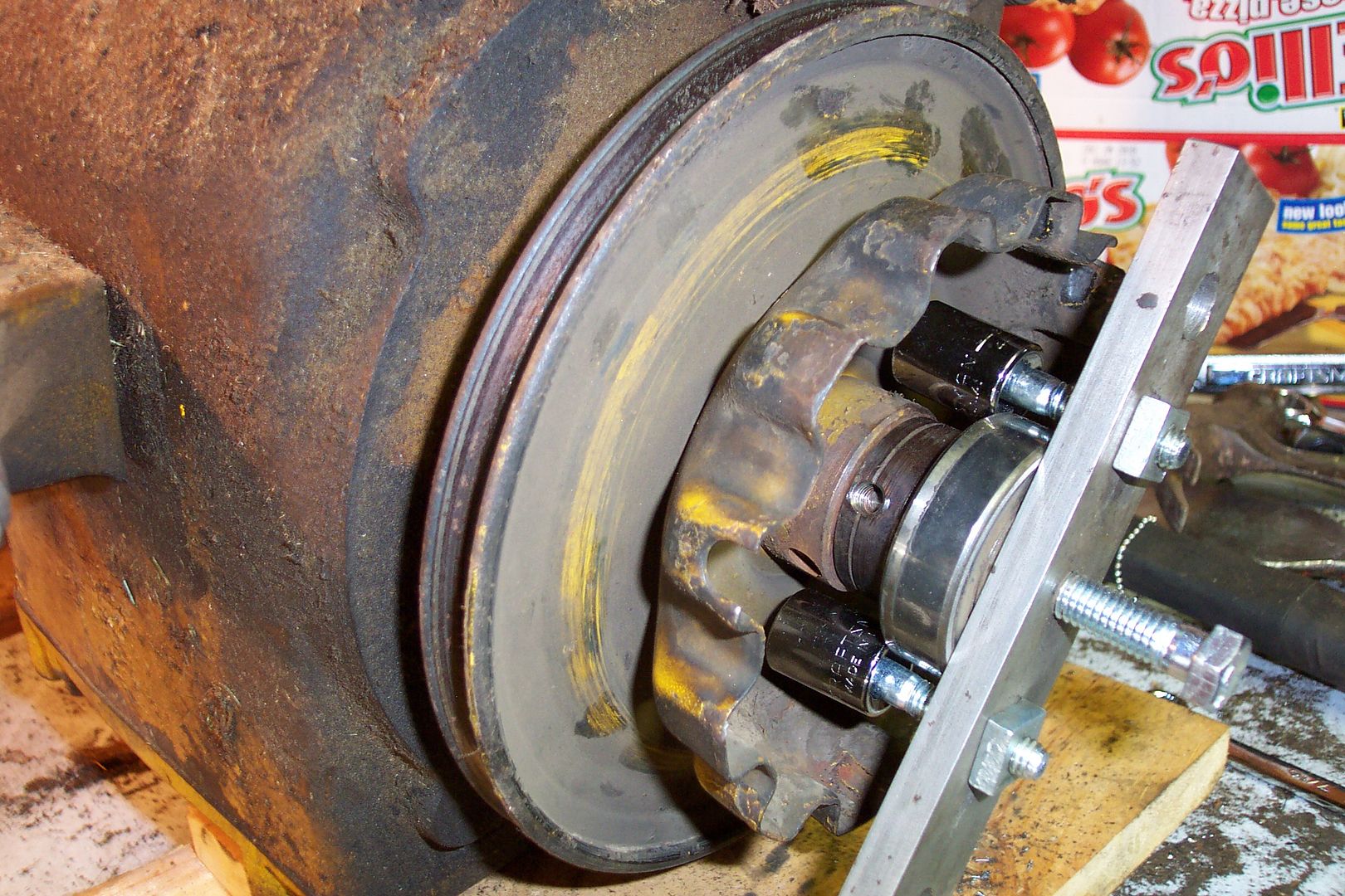 ![]() ![]() click for bigger pic Sockets made for a great bearing puller I spaced the 5/16" holes for the bolt at 3/8" wider than the bearing diameter. I used two 3/8" drive 1/2" sockets ( correct socket for 5/16" bolts) to grab the bearing. After loosening the eccentric, it comes right off. Using the puller to pull the pulley off, just drill the pulley with a "F" drill ( .257) and tap the pulley 5/16-18NC. |