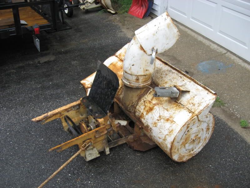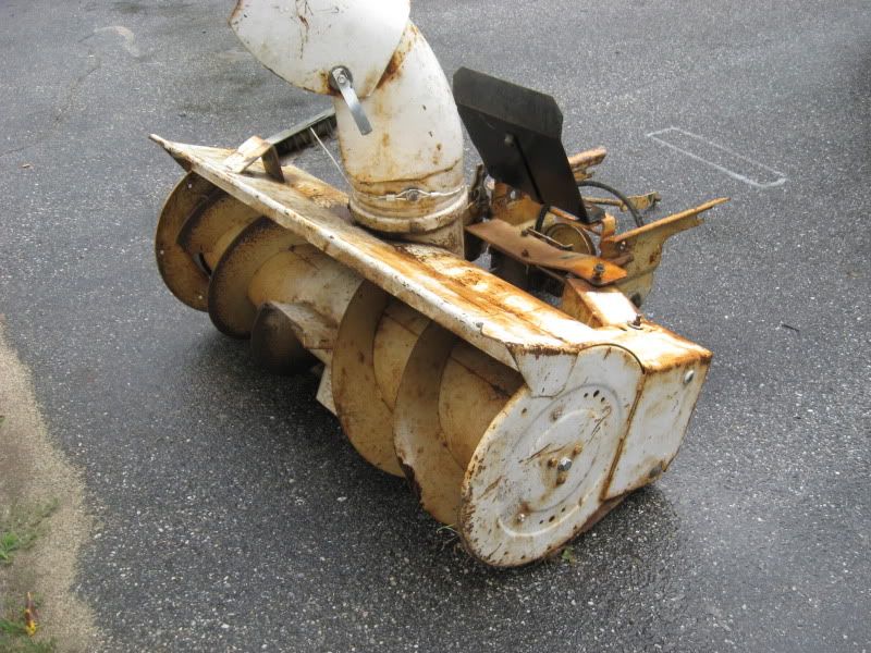 So I went on a journey to pick up a moped and it was a total bust. I was driving past this place and saw this snowthrower for sale on the side of the road and stopped to check it out. The guy was real nice and said he used it on his cub cadet. The cub he showed me was a newer (80's) quiet line series cub (same as my 782 but yellow and white) with smaller engine. It was a 12?? series. I am not real sure of the model but it was basicly the same tractor as mine. He said "$50", and I said "sold". I hope this fits my tractor and if not I guess I'm out $50? I measured the belt it came with and it is 5/8". It is also missing the shoot rod but that should be pretty simple to fab up. Any help on identifying this thrower would be great. There is no plate that I could find with a company name on it. Every thing works well on it so I'm hoping it will work with my 782.