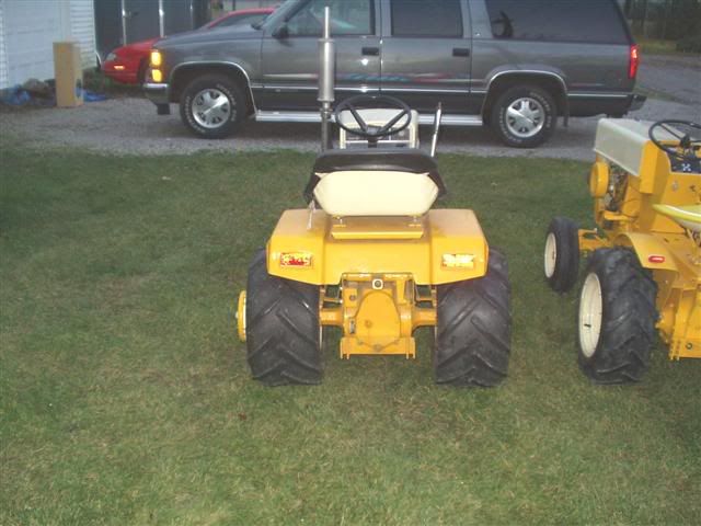 ![]() You will have clearence problems where the fender angles down to the foot rest. I would consider getting 23-10.50-12 ag tires for your 1650. You have ther correct rims for 23-10.50-12 ag tires. The best rim for 23-8.50-12 tires is a 7 inch wide rims. This was my plow crew in 2008: ![]() Rear view: ![]() My Son's 86: ![]() My 100. It has 23-8.50-12 tires on it. ![]() My 149. It has 23-8.50-12 tires on it. I run a dual on the left side. ![]() Which tire works best??? The 23-8.50-12 gives me the best traction when moving earth and snow.The wider tires will need more weight to get the same amount weight (pounds per square inch) to the ground. I have plowed snow with 10.50 and 8.50 ags.....8.50 ags had better traction. My 149 has a set of 23-10.50-12 turfs that I run during the summer and 23-8.50-12 ag tires I use for plow days and snow removal in the winter time. I don't like to run ag tires on the road....the road is hard on the bars/lugs on a ag tire. |