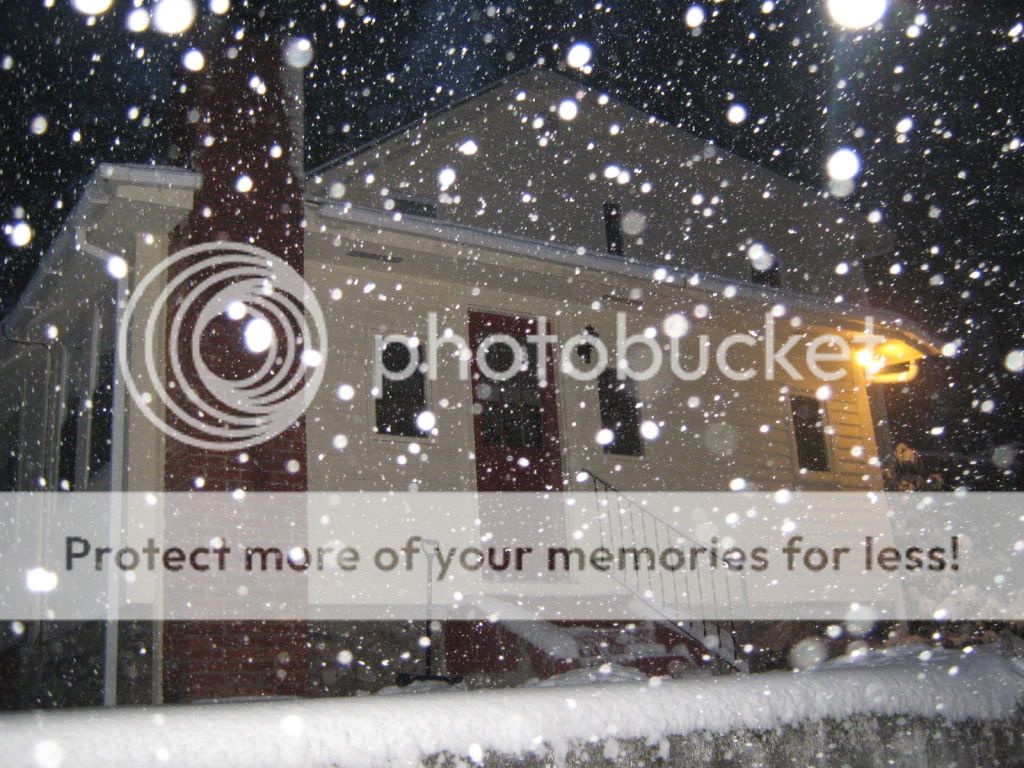 It took me a while to get these up, but the baby wasn't so happy last night. Anyways, after 3 goes at plowing, the yard is passable. the only thing the poor little cub couldn't handle was the snowbank at the end of the driveway, which was taller than me. don't have any action pics, but I do have during and after storm pics.