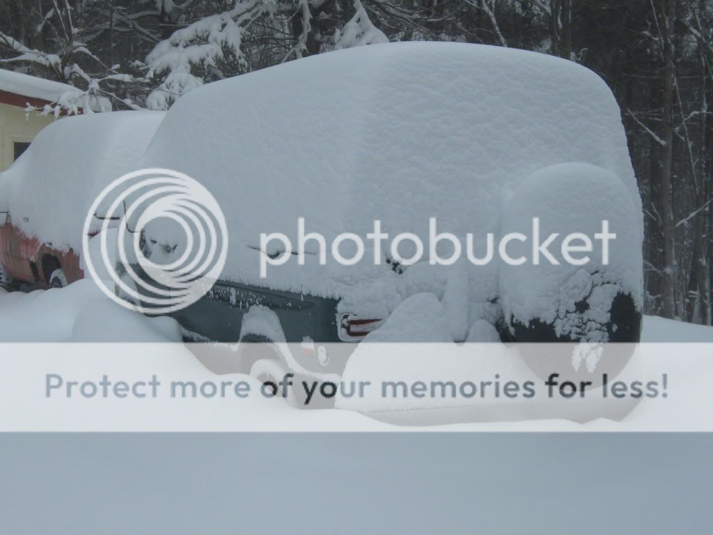 Here's the house just as the first wave of heavy snow was hitting. ![]() ![]() My Jeep with an unhappy face the next morning after the storm ![]() one of my apple trees holding on to its snow ![]() After view of the house, I particularly like the smoke-stained snow frozen to the chimney ![]() my poor van! ![]() The only casualty of the storm on my property, the tent shed collapsed during the first round of plowing. ![]() Baby Matilda helping my plow! ![]() Letting the snow melt off after a long couple days of plowing. what a great little tractor! ![]() ![]() hope everyone out there made it through ok!