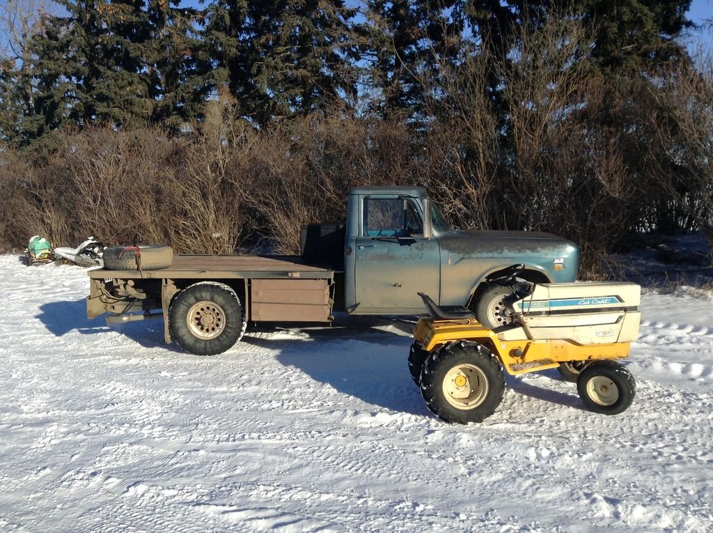 Used some oven cleaner to get the soot off of the front casting, and did some serious playing in the snow. Loaded quad tires and a 14hp Cub cadet is more than enough to go traipsing through a foot of snow