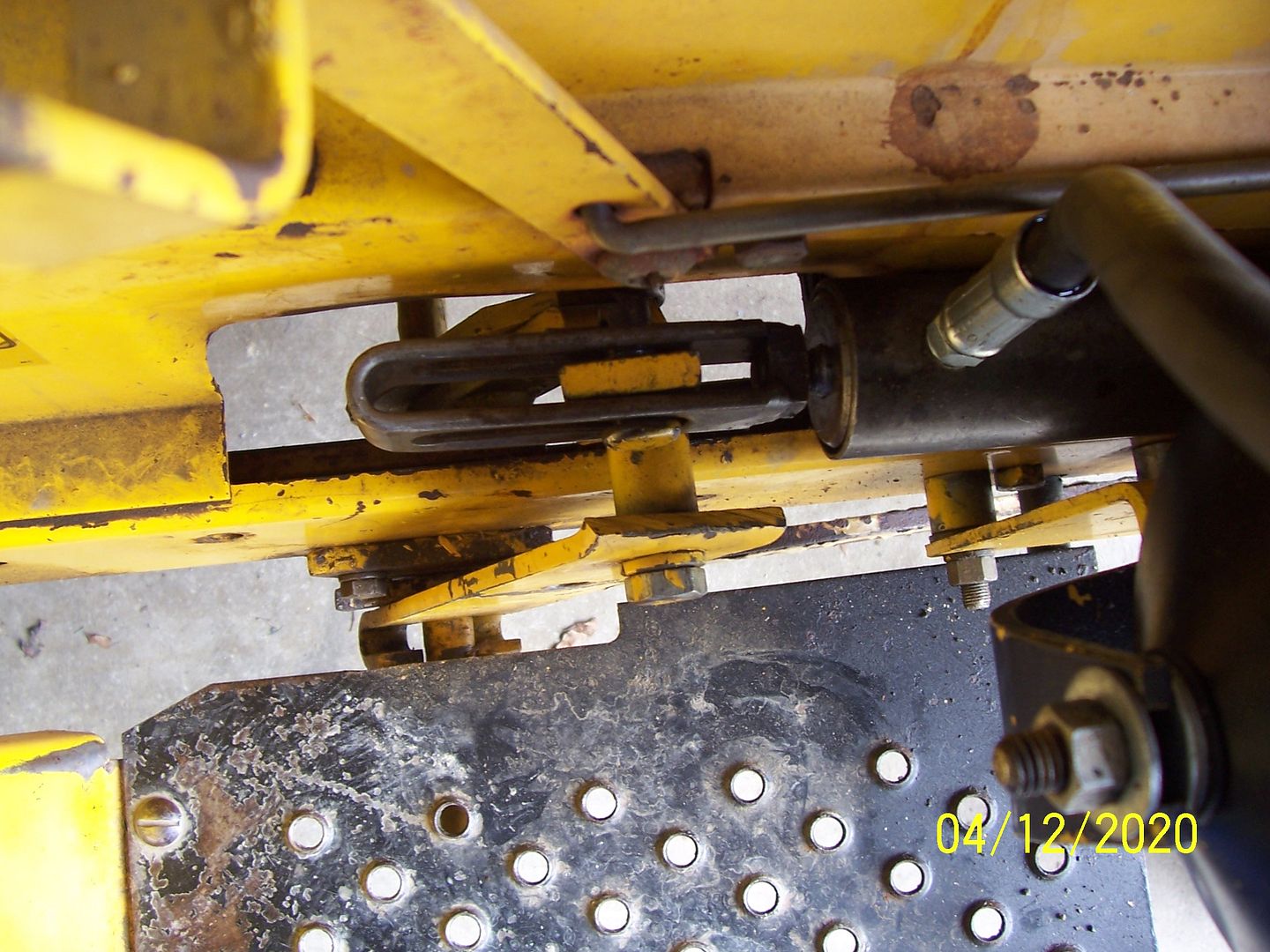 This pic shows where the spacers go, between the pump mounting bracket and the tractor frame.