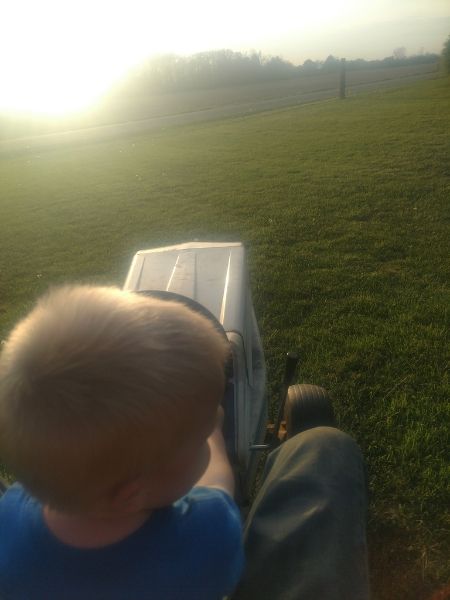 My "baby" getting more drive time. I started young, but I never imagined a 2 year old could drive like he does. <3 ![]() I spent the last couple of days playing with and working the cub and implements. Mostly plow and cultivator maintenance, but also running around the property playing pick up sticks with the #1 cart, working on the tires, and adjusting the carb. I should probably put implement stuff in the proper forums, but some teasers are ok here I'm sure. Pulled the cultivator completely apart, conditioned the shovels, got everything straight and at a good depth again. ![]() I'll be able to comfortably cultivate 24" rows without harming young plants with this one. ![]() My Brinly 8" plow was in pretty bad shape. Both it and cultivator had been sitting on back fence row since about 2013... Didn't take a before pic, but here it is getting setup after I scrubbed, sharpened and polished the plow and coulter. ![]() I had a terrible time getting anywhere with the plow after setup. I'd plow a 60' row, adjust, plow, adjust, plow. It was pretty frustrating and having no weight to keep the front wheels on the ground made it worse. Gave up for the night, went to the barn to load the tires. I found several charts online, one posted on another thread in OCC leads here: http://cubfaq.com/tirefluid.html All charts I found show 5.5-6 gal for 23x8.5-12. I assumed that the new tubes were just too stiff and trying to retain original shape. After 4 days of making the tires earn their keep, I was able to put another gallon in each rear tire without forcing it at all. I have 40+ gal of washer fluid (bought on clearance, got it cheaper when I asked to take it all :-) ) so I might try to add more later in the summer. Each of the front tires took 2.5 gal of fluid. I still hate these tires and want to go with a 3 or 4 rib, but loaded worn high flotation tires are better than nothing. This morning I woke up determined to get the plow set right. Realized right off the bat that I never even checked my landing yesterday, and it was way out of line. Just a little more fine tuning and I was smoking virgin sod with little to no flip back. A light rain this morning helped make the soil perfect for plowing, and with the added weight to front and rear I had almost no slippage, and the front tires never left the ground. ![]() You can sort of see the mess I made yesterday trying to tune the plow in on the right hand side of the pic. 4 rows on either side of tractor were today's as of picture time. Yes, I am aware that I can't plow straight, and yes I was stupid enough to plow myself in. I grew up driving tractors and my first "job" was plowing with the F20. Grandpa would whip my butt even today if he saw this... Doing this good with an 8", I'm wondering if I should start considering a 10" for the tractor... ![]() Quote: