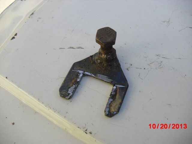 Seat and fenders off for examination ![]() After a good power washing to remove the layers of grime. ![]() Sorry this is blurry but you can see the slots wore in the trunnion. I repaired this by welding on a strip of steel. ![]() Shot of the brakes, they look new. ![]() When a Golden goes nuts over a apple! That's Maggie! ![]() Deck was real good for the age. No holes, no patches! ![]() ![]() This is the crows foot wrench I built to get behind the steering column and tighten the nut for the shift lever. Doesn't look pretty but it worked! ![]() Just a glamor shot. ![]() Seeing double? The new one is on the right. ![]() Regards, Chris