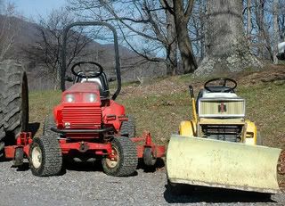 Probably if I was going to get a "good" garden tractor, a JD since there is a good dealer nearby and there seems to be a lot of parts availability. I've been using MTD built big box mowers with reasonably good success and just got a Husqvarna last year (used) and for the bigger stuff have a Ford 9N and 8N. I will be getting a modern SCUT or CUT this year with FEL and finish mower, the wife even agrees (finally will have the car paid off, YIPPEE!). We are at the point that a FEL is needed and I don't see putting the money into renting something for just short term projects like moving manure piles, gravel and misc. "stuff" around the place. With the number of llamas we have the manure removal and loading in the spreader is also a daily task that gets harder with age.