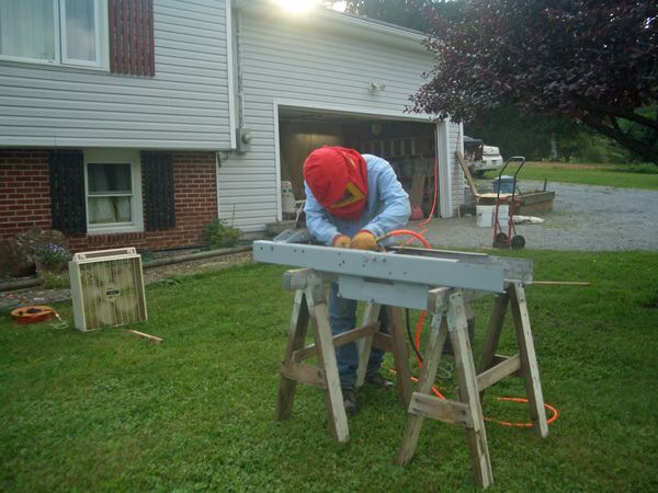 Looking good Eric but to hot to be working outside with a hoodie on!