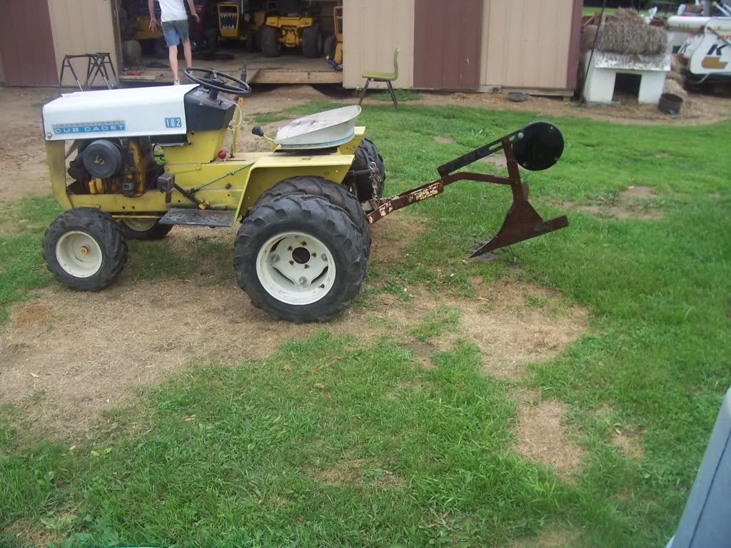 Well felt a lil better today so we put the plow i got last year on the 102 With duals just to see how it worked . problem i have is cant get it to go down in the dirt more than 3 to 4 inches , uness the kid stands on it .then it will go deeper