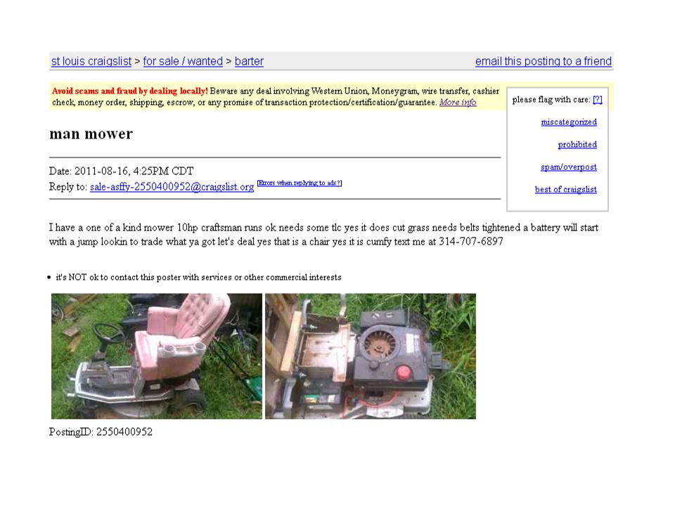 That's too funny. I preserved it as a jpeg so the image won't go away when someone sweeps that sweet machine up and the ad's no longer on CL: