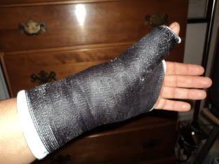 Well i have to wear this cast until the 19th and take it easy. Dr was concerned about the one inch laceration so i have to take some antibiotics and see him again monday hopfully it dont get infected. Because then i will need surgery.