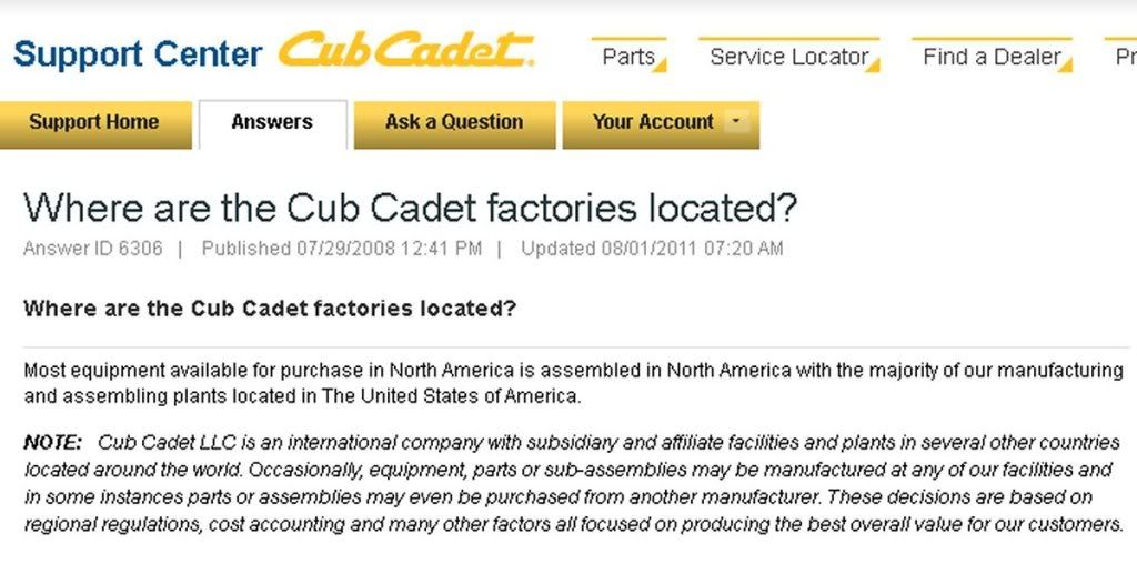 So I gather that when MTD bought Cub Cadet, they located production at their new Brownsville TN plant, however they closed that plant a few years ago.
