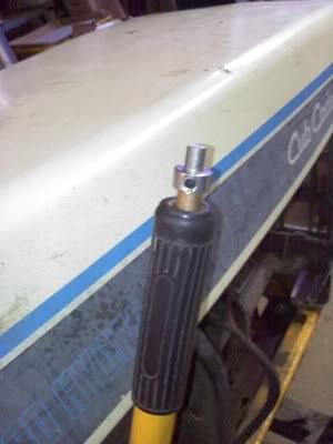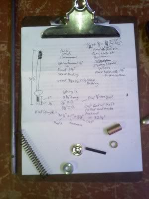 I got tired of reading "not avaliable" on every parts list I could find, so I took measurements and started looking around the shop for ideas to make one. If you can't read my notes, don't bother. The measurements are correct, but I was unaware that the catch at the bottom doesn't travel the entire range allowed by the cut out in the lever shaft. That threw the whole project out of whack. I came up with a 3/8" steel rod, a 3 3/4" x 1/2" spring, a couple 3/8" x 1/2" sleeve bushings, a 3/8" shaft collar, 3/8" axle nut, and a 3/16" roll pin. ![]() The spring fit in the hole like it was meant to be there. a 3/4" long sleeve bushing presses the spring in and the shaft collar holds it all in place. Excess length in the rod is because of catch not traveling to top of cut out in the bottom. ![]() At the bottom end, I put a roll pin through the rod to act as a catch. Made the bottom of the rod a bit too long for the same reasons as the top. ![]() It ain't pretty, but this is my "hey, at least it works now" fix. When I get the notion to make it better, I've got a few ideas. 1/4" roll pin instead of 3/16". The 3/16" has a lot of play in it. Find (hopefully) a 5/16" x 1/2" sleeve bushing, thread the top of the rod, tap threads in the bushing, screw the bushing on tight, cut the rod flush with the bushing and paint it black. Would look about right I think. |
