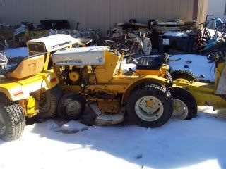 Nick. ![]() Cub cadets 100, 125, 86, 108, 109, 128, 129, 129, 149, 149, 169, 1450, 1650 and a handfull of parts tractors. #40 box blade, ih back blade, rear ih rock rake, #2 cart, windbreaker soft cabs, windbreaker hard cab, cozy cab, kwikway loader , wards corn planter, brinly plows, culitvator, rear blade, disc and the usual decks, snowblowers and 2 tillers |