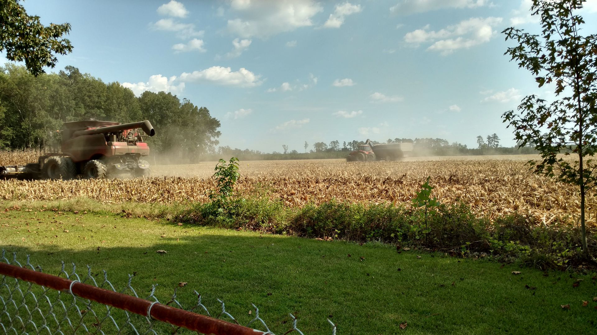 The corn was harvested in the field behind the house this evening. Thought you guys would like to see some pics.