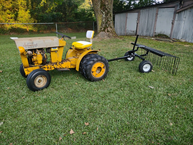 Cool, a dump rake. Think you will add a rope from the rake handle to the seat back. An outfit like that would sure be great under my Maple trees in the fall. I'm happy for you.