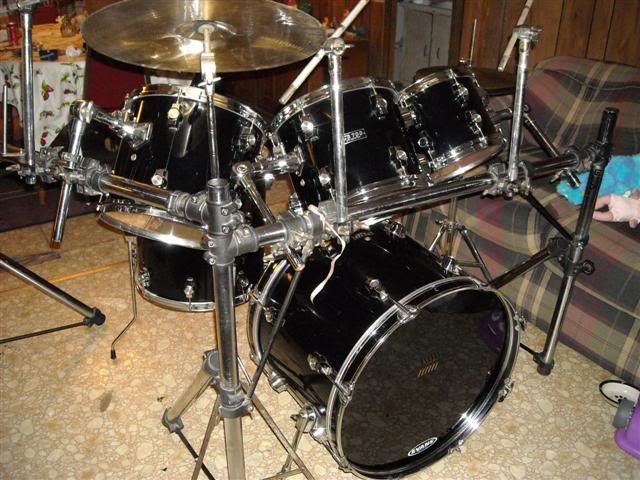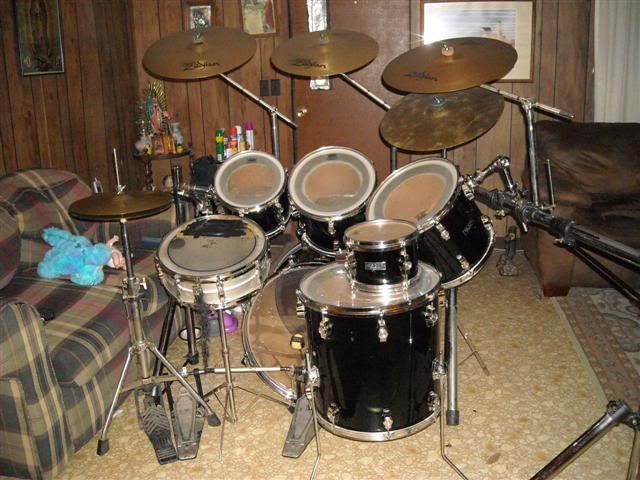 Thanks for the info and the tips!!!! I really do appreciate it. I'm pretty sure I will have some people sending me messages like that.LOL By the way guys, I'd figured I would show you guys what I'm getting ready to sell. I need to sell off this drum set to make some room. I'm fixing to get into the DJ business and I need all the room I can get to make way for all the DJ equipment that I need. Here are the pics: I'm only asking $500.00 for the whole thing. Minus the 3 crash cymbals and the Double Bass Drum Pedal. ![]()