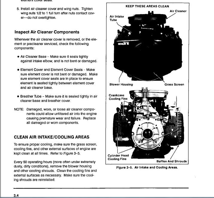 ![]() Now hop on over to the Service Manual for CC models 1050, 1202, 1210, 1211, 1810, 1811, 1812, 2072, 1572, 1772 and 1872. (Form number 772-3899) Drop down to page 1-37 and follow through to page 1-44 where you will find the instructions for "doing it the right way". There are 26 steps to take to remove the 18 and 20 HP engines and as many to re-install. Each one of these steps however minor, is a potential problem you might be causing. I'm sure there are shortcuts you experienced folks can take to shorten the process but "doing it the right way" to me means following the manuals. I simply offered an easier way to get a specific job done on these engines. If you cannot pull off the shrouds (I refer to them as cowling) without pulling the engine, and still be able to access the cooling fins for cleaning, all I can do is feel sorry for you. The bottom line is that Kohler should have provided access covers for these jobs but didn't. I see nothing wrong with improving on the great engines they built. And as to the $100 repair someone mentioned to replace one jug, wow that's almost 2 hours pay. And the equipment I worked on for 37 years had single bolts that cost that much. I didn't intend to step on any toes but to imply that your ideas are better than mine without know my background is very insulting to me. |