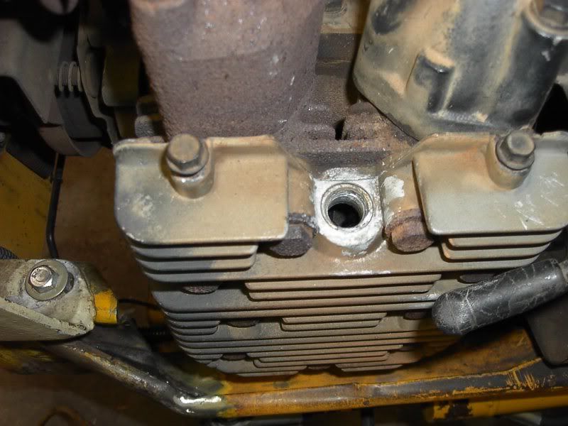 I also took out the spark plugs to check them. There is some sort of gray/silver around the holes and on the threads of the plugs. It looks like a sealant of some sort. It is flaky but not totally dry. What would this be? The threads in the head are good. Is it some sort of anti-seize maybe? ![]()