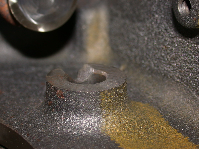 Another consideration is that my K341 has the "short" camshaft pin, so you have to recess it .300" on the bearing plate side (the side that's missing the chunk) so the shaft will be sitting in about .340" of solid hole. <edit> It's not the short shaft, it's the long one. But by the time you drive it flush with the PTO side, it's still .300 into the bearing plate side, so this is still a valid observation</edit>
