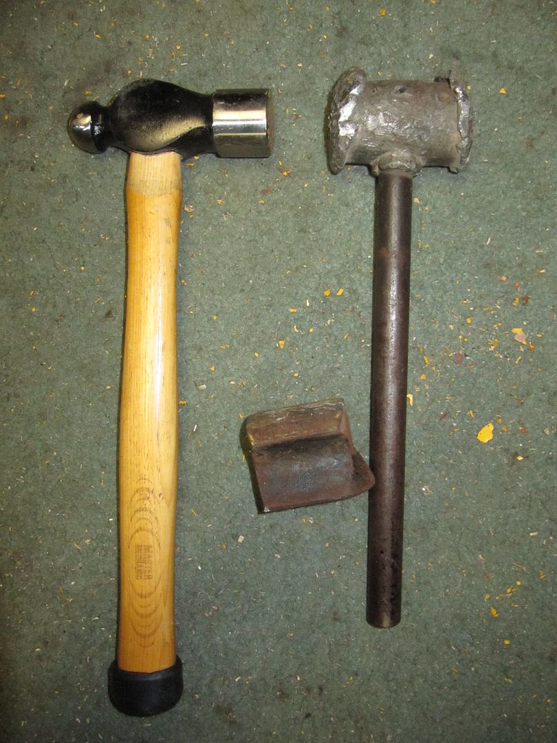 I used a 2 lb ball peen hammer and a 5 lb mini sledge and a palm shaping tool and hit against a piece of steel.