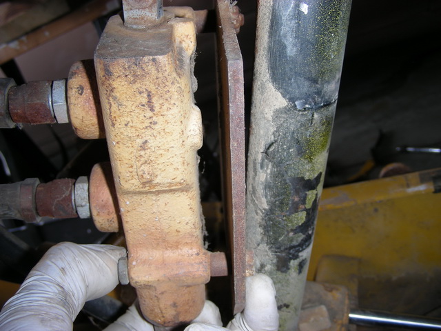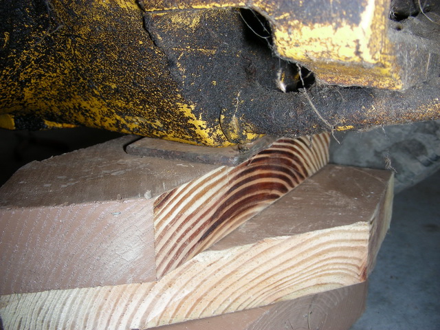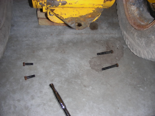 First I removed this speed control linkage that was just kind of hanging out to get it out of the way: . ![]() Then I removed the hydraulics from the steering column by taking off the U-bolts. I noted that it was mounted kind of cockeyed, and took pictures of it to remind myself of the angle. Is that a space-constraint thing, or was mine just that way? . ![]() Then I removed the piston for the hydraulic lift: . ![]() . ![]() . Then disconnected the rod from the steering, and pulled the two bolts holding the steering column to the frame, and it's out: . ![]() . Then I disconnected two linkages (can't name them, but here's pics) and a spring: . ![]() . ![]() . Blocked up the front of the differential; . ![]() . Removed the two brackets and two more bolts from each side... . ![]() . ![]() . And voila, we have a split tractor: ![]() . At this point, I'm admiring the elegance in simplicity of these tractors. Such a big, powerful, long lasting tractor, and such simple assembly. I had a moment while cleaning out the engine area of the frame where I was feeling a bond with my 1650. I think I heard the big tractor purr from the care it was getting after all these years.