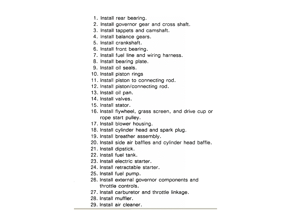I'm going to do this in detailed fashion, as much as I can document, for two reasons: 1) So you guys that know what you're doing can catch any mistakes I might make (so watch closely and let me know!,) provide better ideas, and... 2) To show things in much greater detail than the service manual, so guys like myself who haven't done this before can feel more confident about doing the job, and can reference this build-up when they do it themselves. I'll use the Kohler Service Manual's numbered order of reassembly steps: