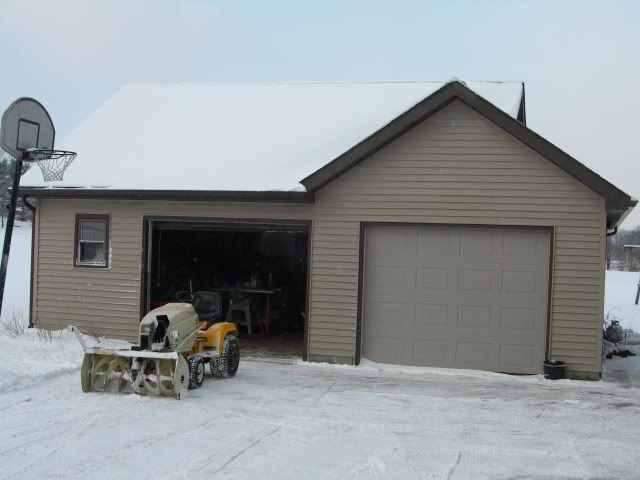 ![]() I put a set of lights on the drift cutters. I found that headlights shine right in the stream of the chute and I really can't see anything. Only problem I had was that the charging system couldn't handle 2 sets of lights and the pto, so I disconnected the cyclops lights for winter. I can see great now. ![]() Even with all the snow I got last year, I never had it above the housing, so I'm not too concerned about knocking them off....yet. ![]() Here's a few pics of the Cub's nest. The opened side is really my woodshop, but the other side is currently full. ![]() ![]() ![]()