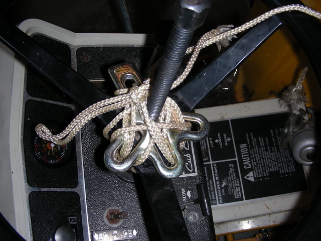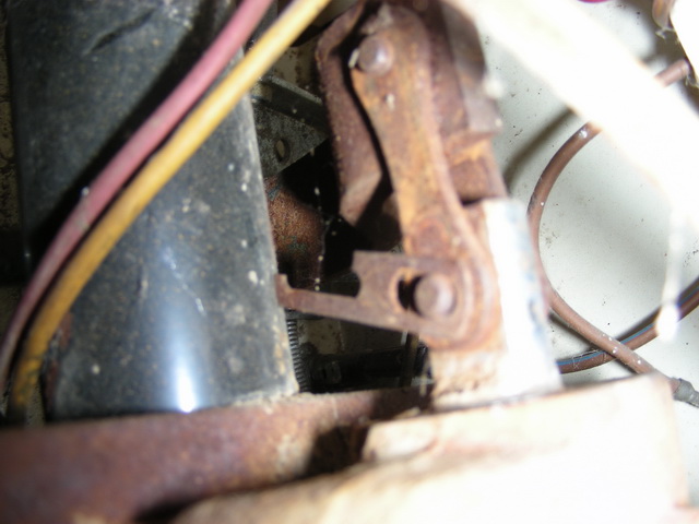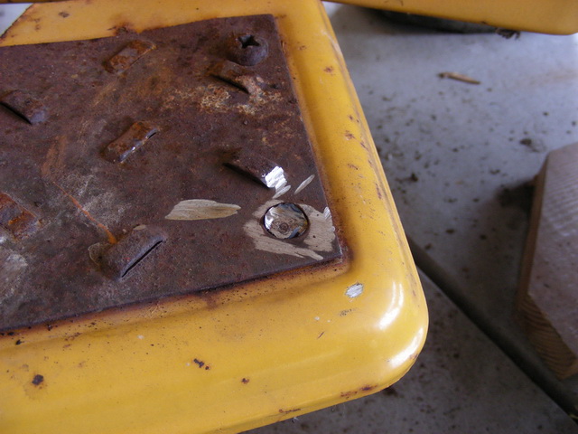 I pulled the steering wheel using the home made 2x4 setup with a puller. That thing was really on there. I had tightened it to the point that I was worried about breaking something with a 3/8" drive ratchet on the puller, and then had to give it several whacks with a hammer to get it free. I built my puller using mostly 1/4" threaded rod. I had a junky piece of it sitting around, and it was available (rather than multiple trips to the hardware store to pick up long bolts that I didn't have.) . ![]() . Now here's an idea I tried last week and gave up on. When I first read about fabricating a puller, I thought maybe I'd be lucky and my wheel wouldn't be stuck too hard, so I simply sat the puller on the column and went in, out, and around 10-12 times with nylon corded 1/4" rope. . ![]() . I cranked it with the socket wrench to the point I was at today (before I hit it with the hammer,) then chickened out and quit. But I seriously wonder if I'd have hit it a few times if it would have worked. Perhaps the flex of the rope would have reduced the effect of the hammer blows, but I'm beginning to suspect that it would have worked had I tried it. I was really, really tight with that socket drive and the rope. I'd like to see if someone else can pull this off, because it could save a good bit of time and hardware vs. building the 2x4 puller if you can make it work. Removing the control panel just required pulling some wires and a few screws from the dash panel. I took a lot of pictures for myself to make notes of the wiring, but I still think it's going to be a challenge to rewire. On that note, I think I'll build a new wiring harness myself. When I was a kid, I used to build wiring harnesses for my Dad, who supplied them to a kit car manufacturer. It's pretty easy stuff. Then I got to removing the tower, and looking around I tried to find the best method to disconnect some stuff. In trying to disconnect the hydraulic lift shaft, I targeted the clip that held the shaft to the hydraulic unit, and when I put a screwdriver on it, I broke it. . ![]() . ![]() . I figure I can probably replace that pretty easily, or simply go with two horseshoe clips instead, but I'll bet someone here knows a better way to go about removing this shaft... The rest of it was pretty straight forward, getting the tower and the frame cover off. Take lots of pictures of the wiring! Now on to the fender pan. The four bolts in the battery area are easy, but the ones on the foot rests are a challenge. I put a 9/16" 6-sided socket on the bottom side, and they turned stripped in no time. These are soft metal, and obviously rusted. I've read some stuff on removing them, and will have to review it. I know it had to do with heat and such. But given that the plates are in such bad shape and I'm considering alternatives to replacing them (and my propensity to have little patience with such things,) I went after them with my side grinder with a cutting blade: . ![]() . As you can see, I hit the foot grip a few times. Once I did that, I started to think that maybe I'd want to reuse them, so maybe I'd better not hack at it. So on to try another method... |