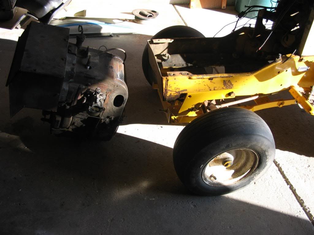 It's been a while since I participated because of work and family. For the past several months, my 1450 would shake at start up(violently) and shake while mowing the yard. So I dug into it to investigat and low and behold there were some engine mount bolts missing from the isolater mounts...not the isolater bushings them selves but the engine oil pan bolts. Started disassembly ![]() ![]() Undid the driveshaft and the engine lifted right out! There were no harware securing the engine to the frame! ![]() As you can see the isolater mounts were well intact(they had new busings) ![]() There was one bolt that broke off into the engine but it came out easily(thankfully) ![]() ![]() Notice I wear gloves..ain't I a sissy! LOL! Take care! ![]() |